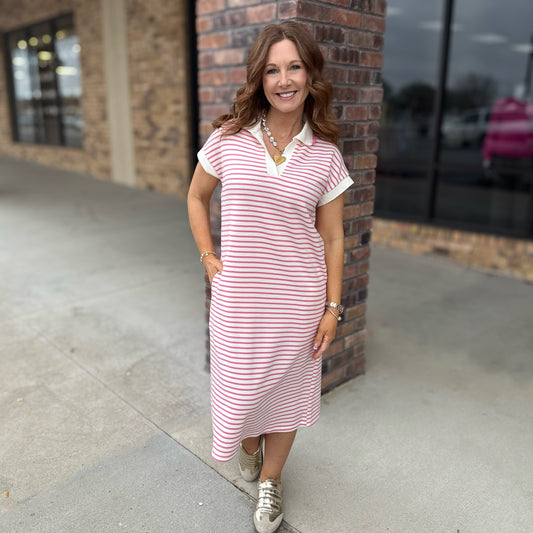 Charming Strip Midi Dress: 2 Colors