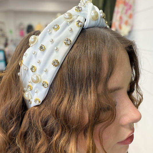 Rhinestone & Pearl Solid Color Headband