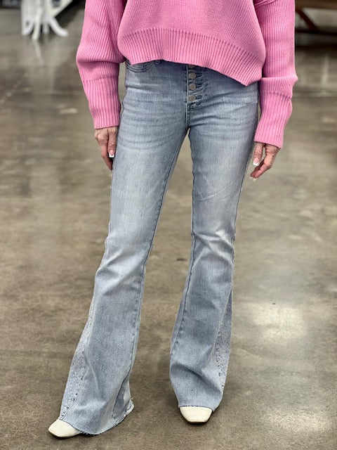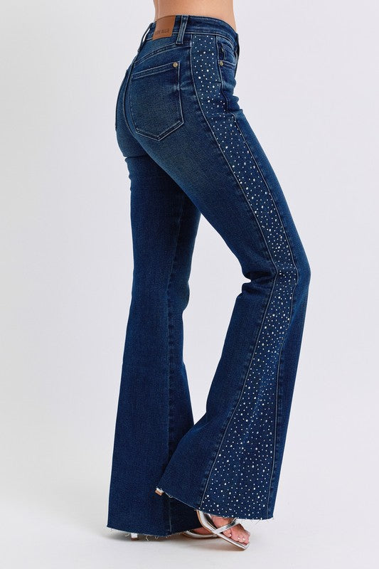 Judy Blue Mid Rise Rhinestone Side panel Flare Jean