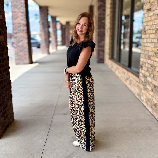 Leopard Light Weight Wide-Leg Drawstring Pant