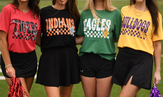 Checkered Faux Glitter Stars School Spirit Custom Tee: Pre-Order