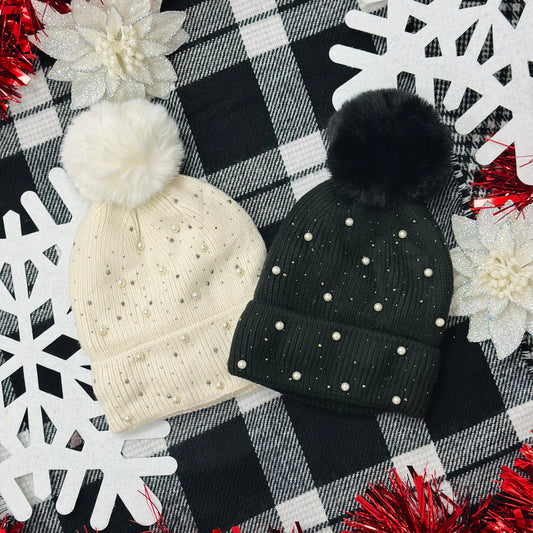 Pearled Out Black Beanie