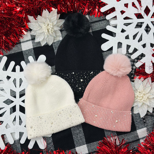 Pink Chic Rhinestone Beanie