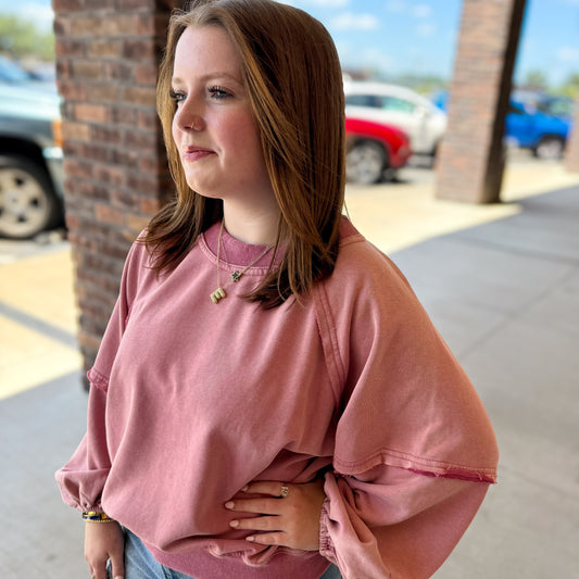 Trendy Raw Hem Pullover Sweatshirt: Mauve
