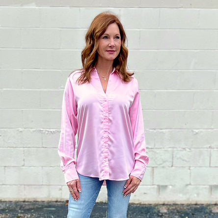 Satin Button Down Blouse (Multiple Colors)