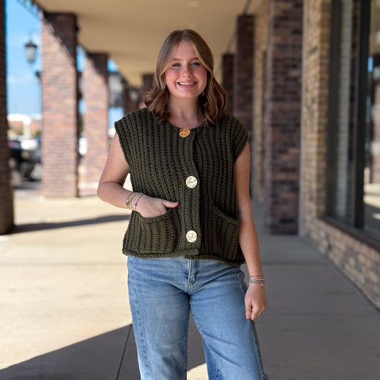 Chunky Olive Sweater Vest
