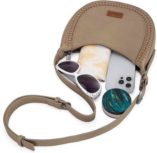 Wrangler Whipstitch Crescent Crossbody- Tan