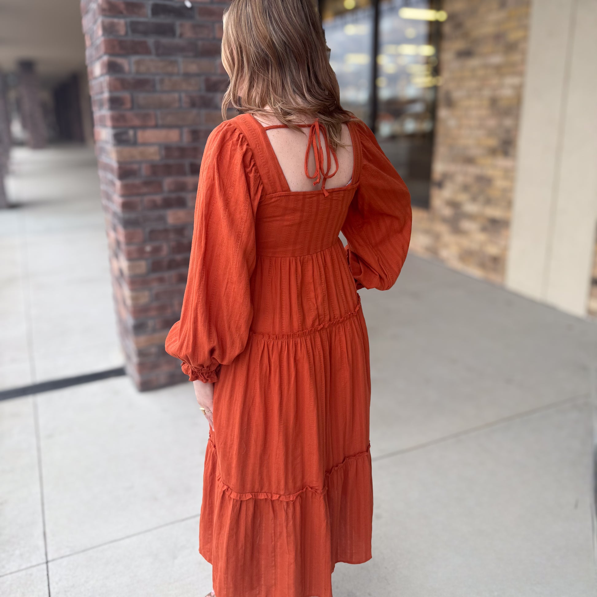 Capture the warmth of a pretty sunset in the Ruffle Cuffed Long Sleeve Midi Dress. Featuring a smocked bodice and elegant square neckline, this peasant-style dress exudes timeless sophistication. Its delicate ruffle cuffs add subtle charm, making it an ideal choice for holiday gatherings and family photos. The flowing midi length offers comfort and grace, ensuring you look effortlessly polished for any special occasion.