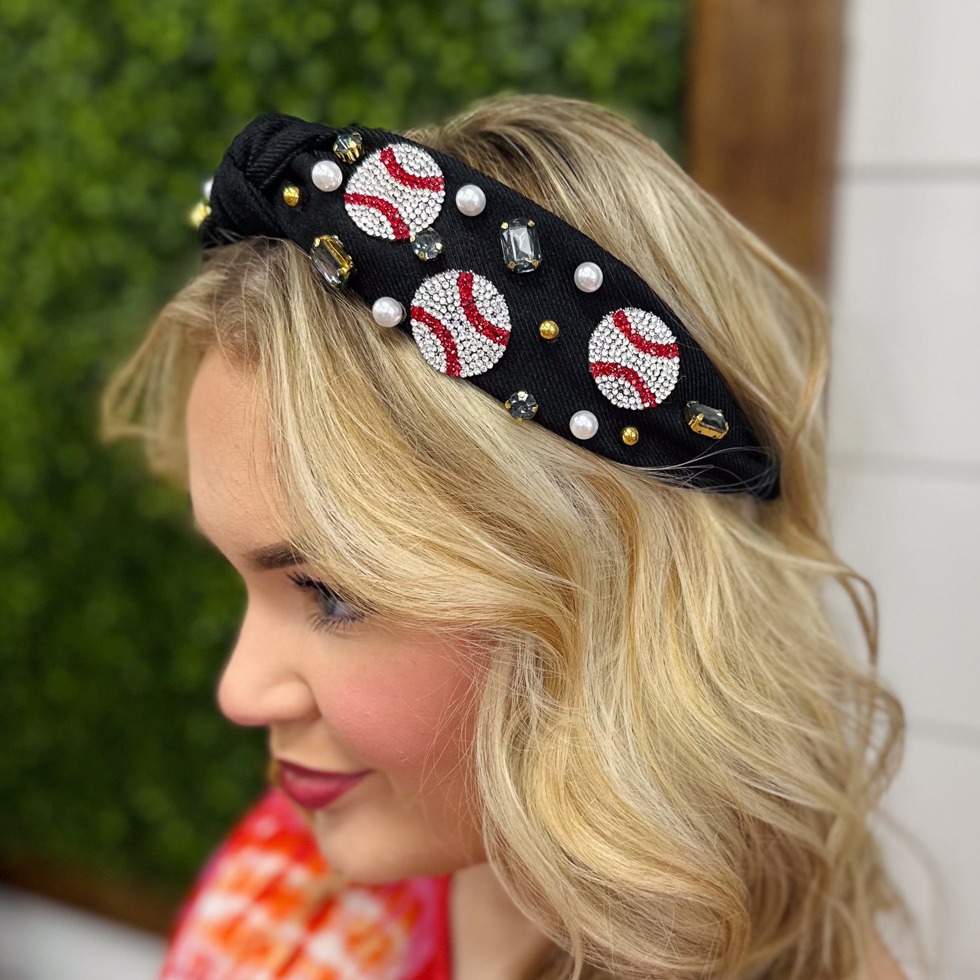 Get ready to hit the field with our Swing Batter Headband! Keep your hair in place with our stylish headbands featuring rhinestone detailing and blingy baseballs. Perfect for any baseball fan, these headbands add some extra sparkle to your game day outfit. Don't strike out, grab yours now!