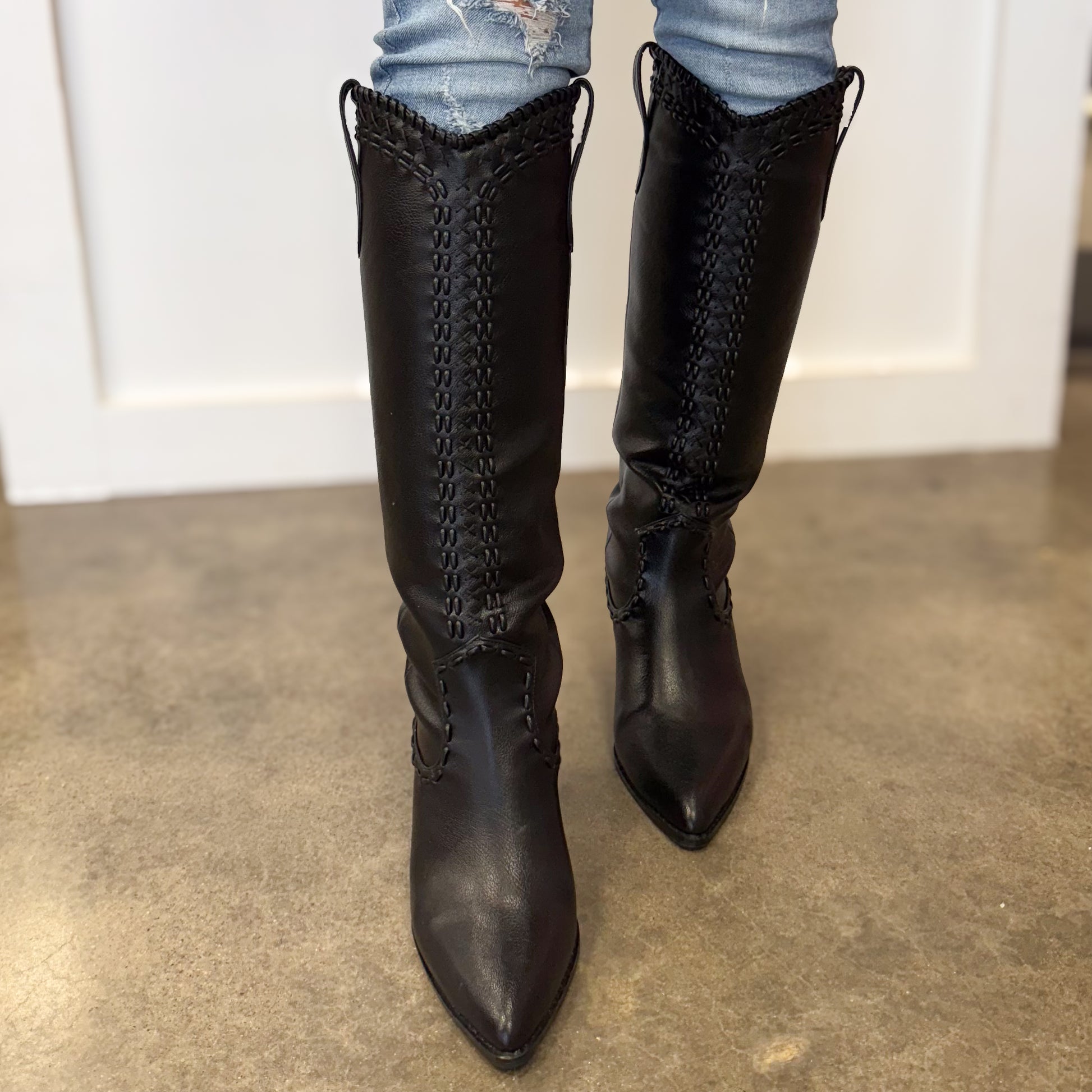 She's back and better than ever! The Finley by Billini is your go-to western boot for making a statement at every occasion. This long, show-stopping style features a soft pointed toe, classic western-inspired stitching, and oversized side pull tabs for effortless on-and-off wear. Balanced on a comfortable 8cm mid stacked block heel, the Finley delivers that perfect blend of style and wearability. Whether you're hitting festivals, events, or just turning heads around town, this season's must-have western boot is ready to elevate your look. She's dressy and classy all in one!