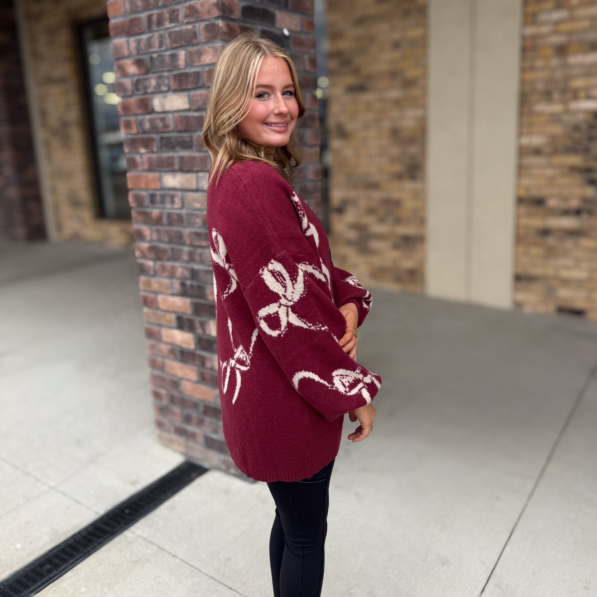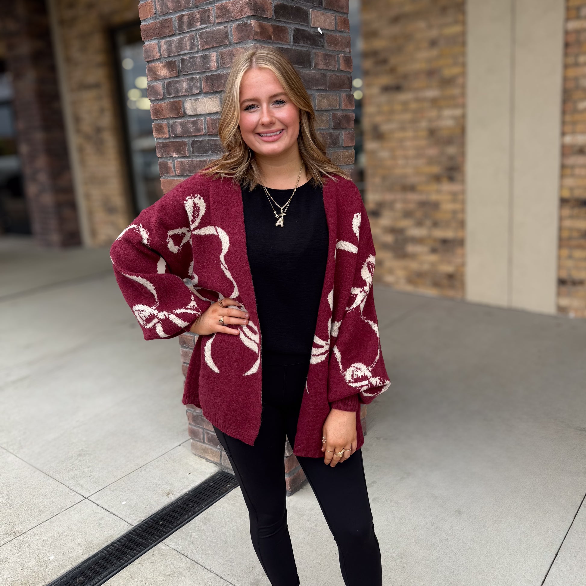 Elevate your wardrobe with this Umgee cardigan, engineered for both comfort and sophistication. The plush fabric feels luxurious against the skin, while the bubble sleeves and a refined bow detail create visual interest. This versatile layer works equally well dressed up for evening events or paired casually with everyday essentials. Available in wine and black.