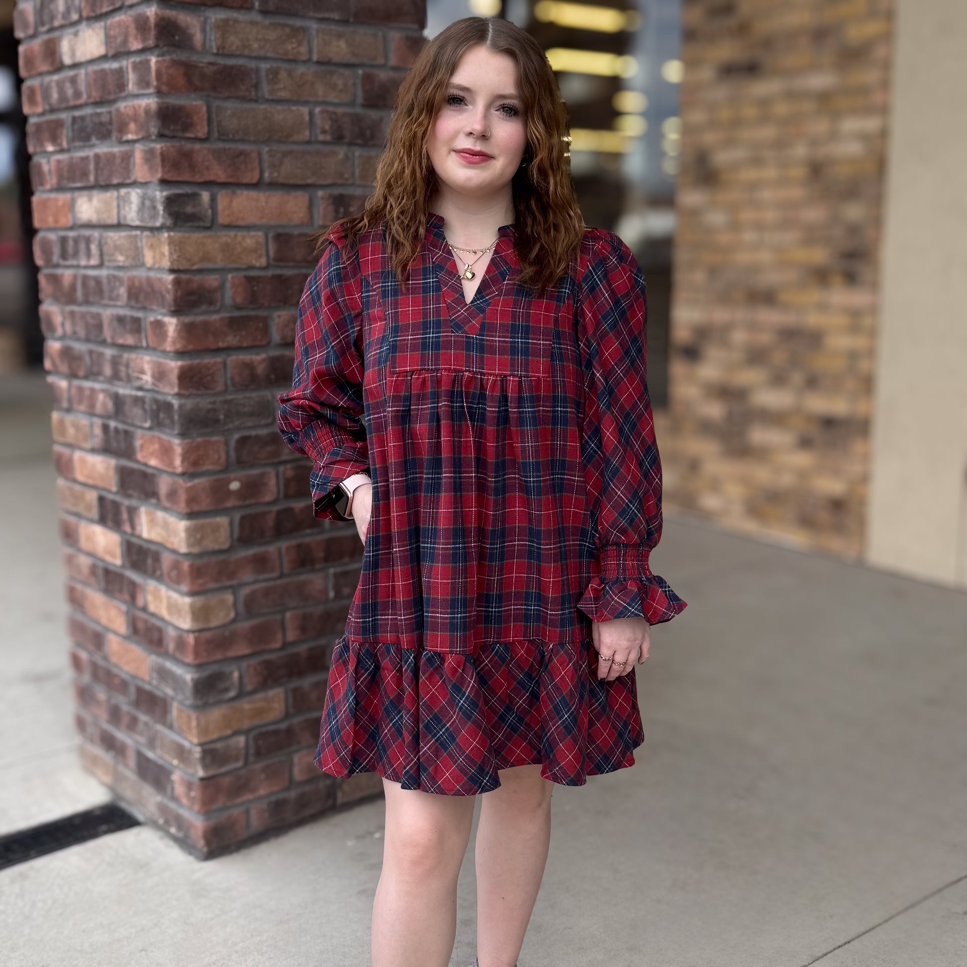 The Umgee Mix Plaid Tiered Mini Dress offers a comfortable and stylish choice for holidays and special gatherings. Its V-notched neckline and classic plaid design create a timeless look, while the tiered mini dress shape adds a flattering, playful touch. Long sleeves with smocked cuffs provide gentle support and ease of movement, making it perfect for festive occasions. Fully lined for added comfort, this dress helps you feel confident and ready to celebrate.