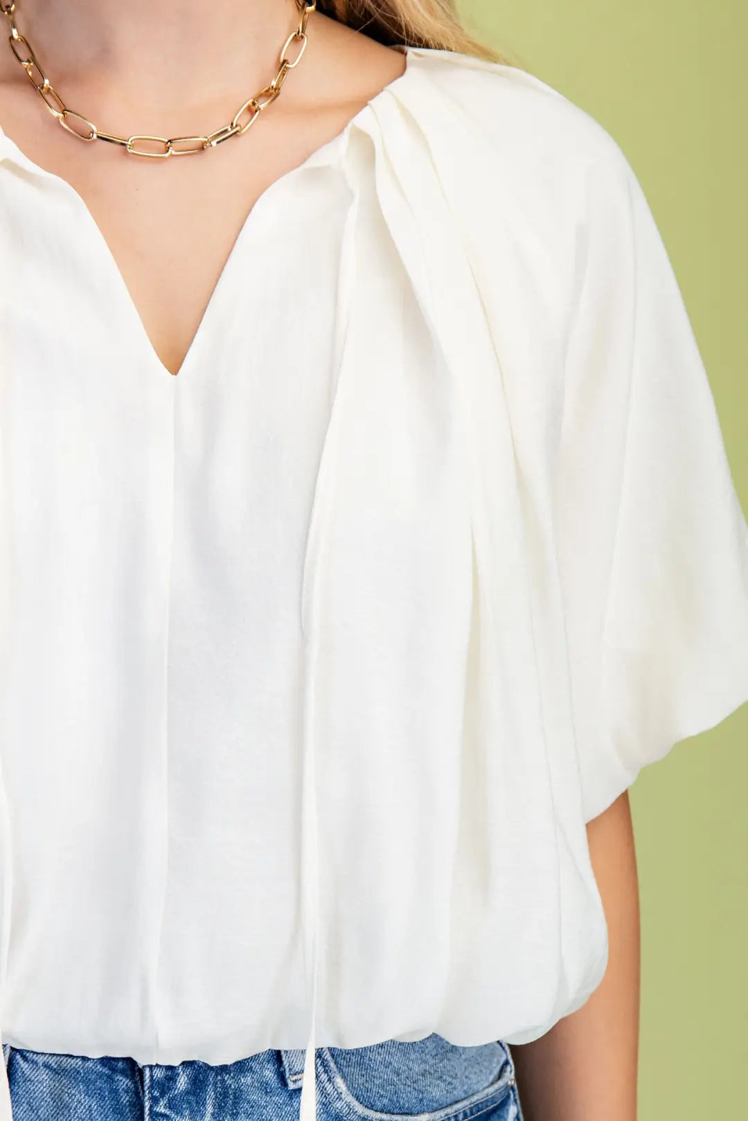 Playful meets practical in this charming balloon pleated crop top! Featuring short sleeves, a flattering tie neck design, and a fully lined construction, it transitions effortlessly from casual weekend vibes to dressed-up nights out. The voluminous pleated silhouette adds movement and personality to any outfit. Choose between timeless black or crisp ivory to match your mood. Whether you're pairing it with jeans or a skirt, this versatile piece brings a touch of whimsy to your wardrobe.