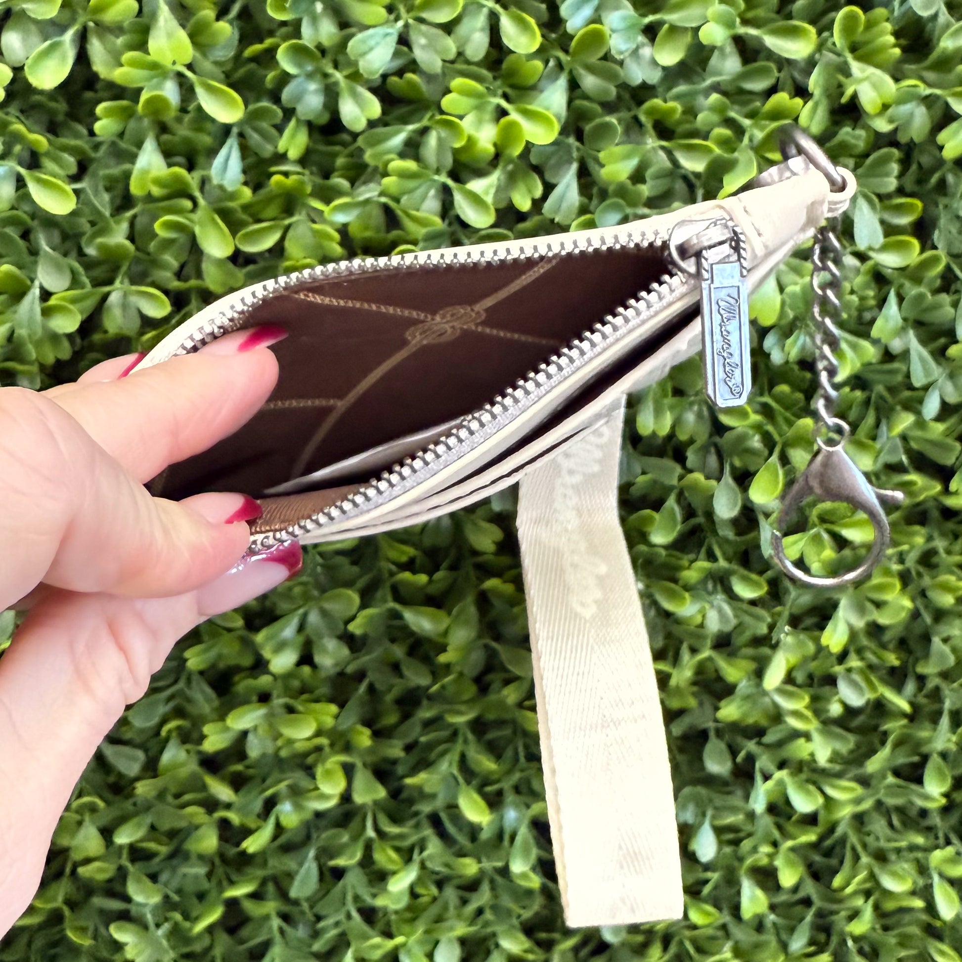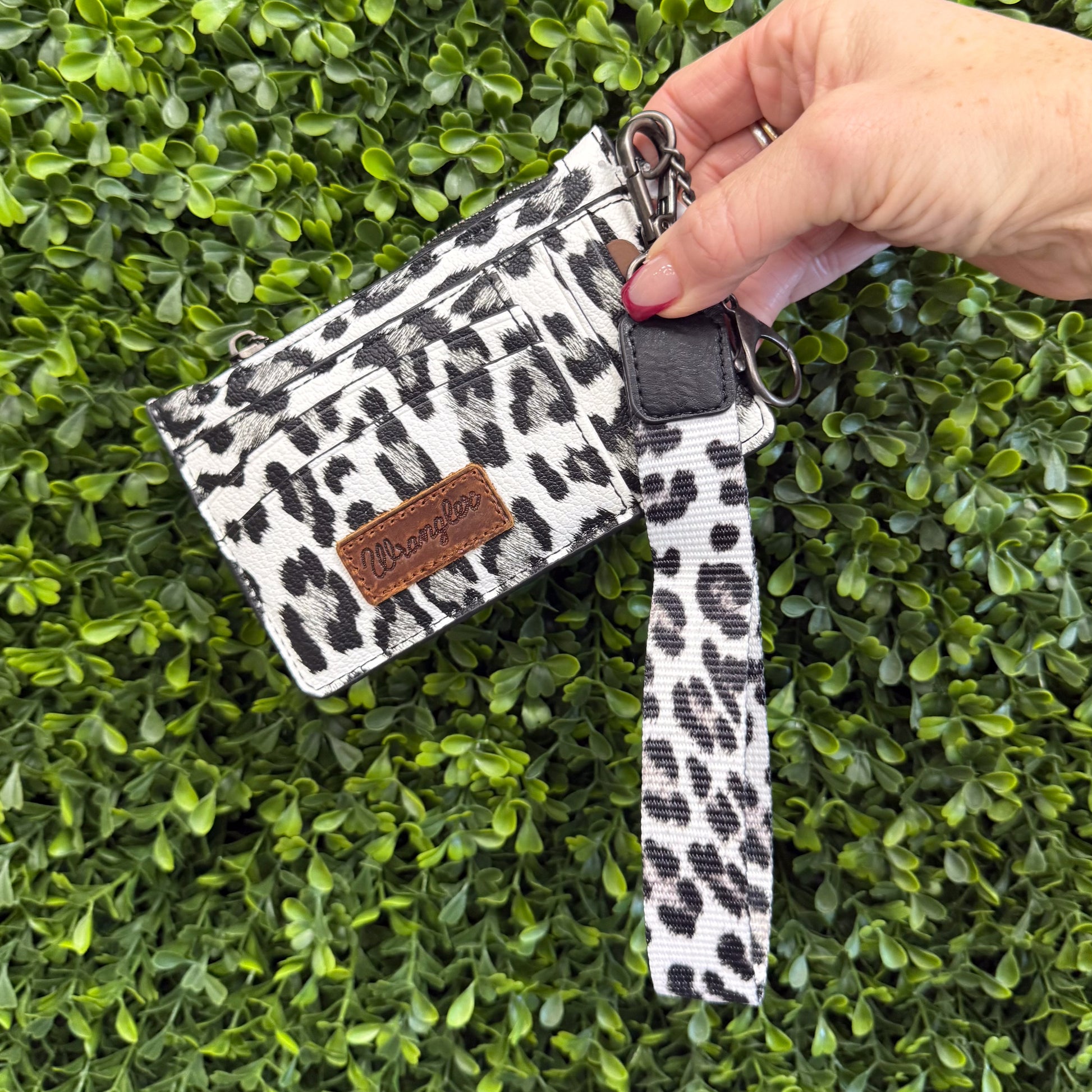 This Wrangler wristlet is a stylish and versatile accessory. With a detachable wristlet and top zipper, it holds your cards securely while on the go. Its 6 card slots and Wrangler emblem make it both functional and fashionable. Available in multiple colors.