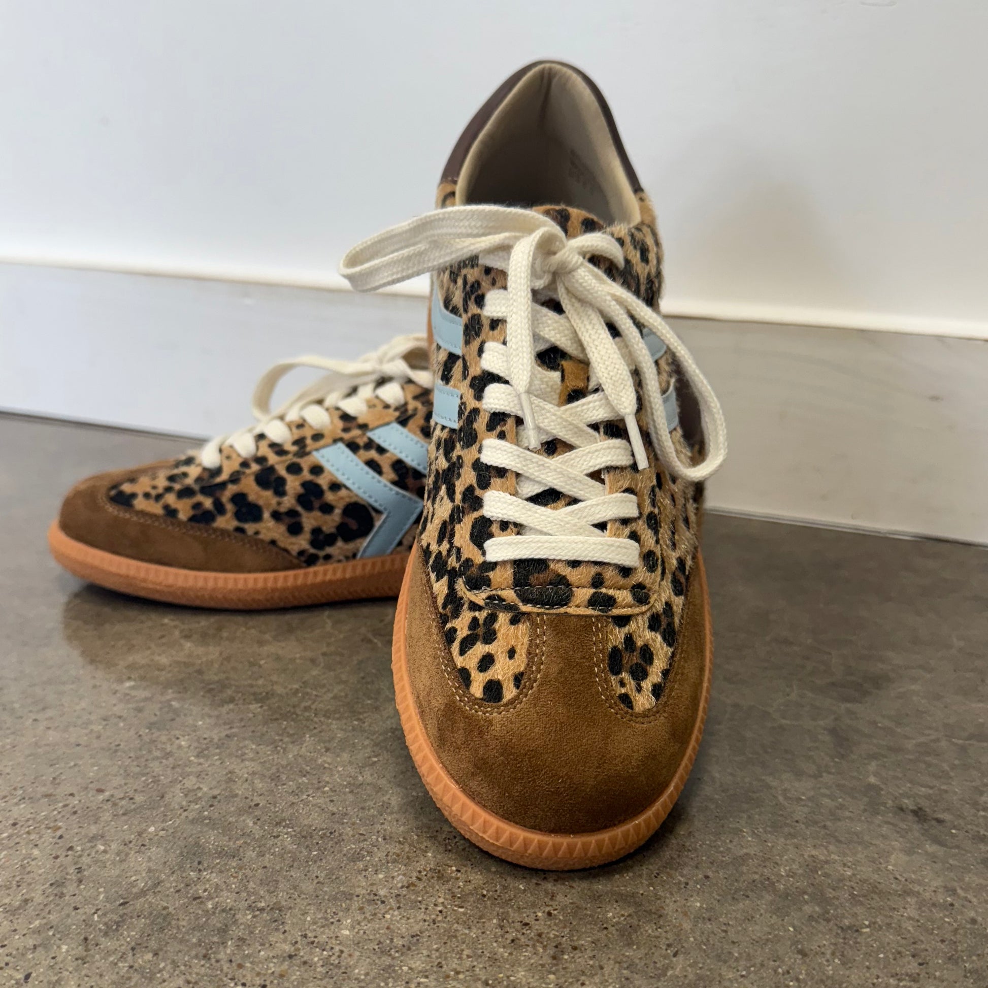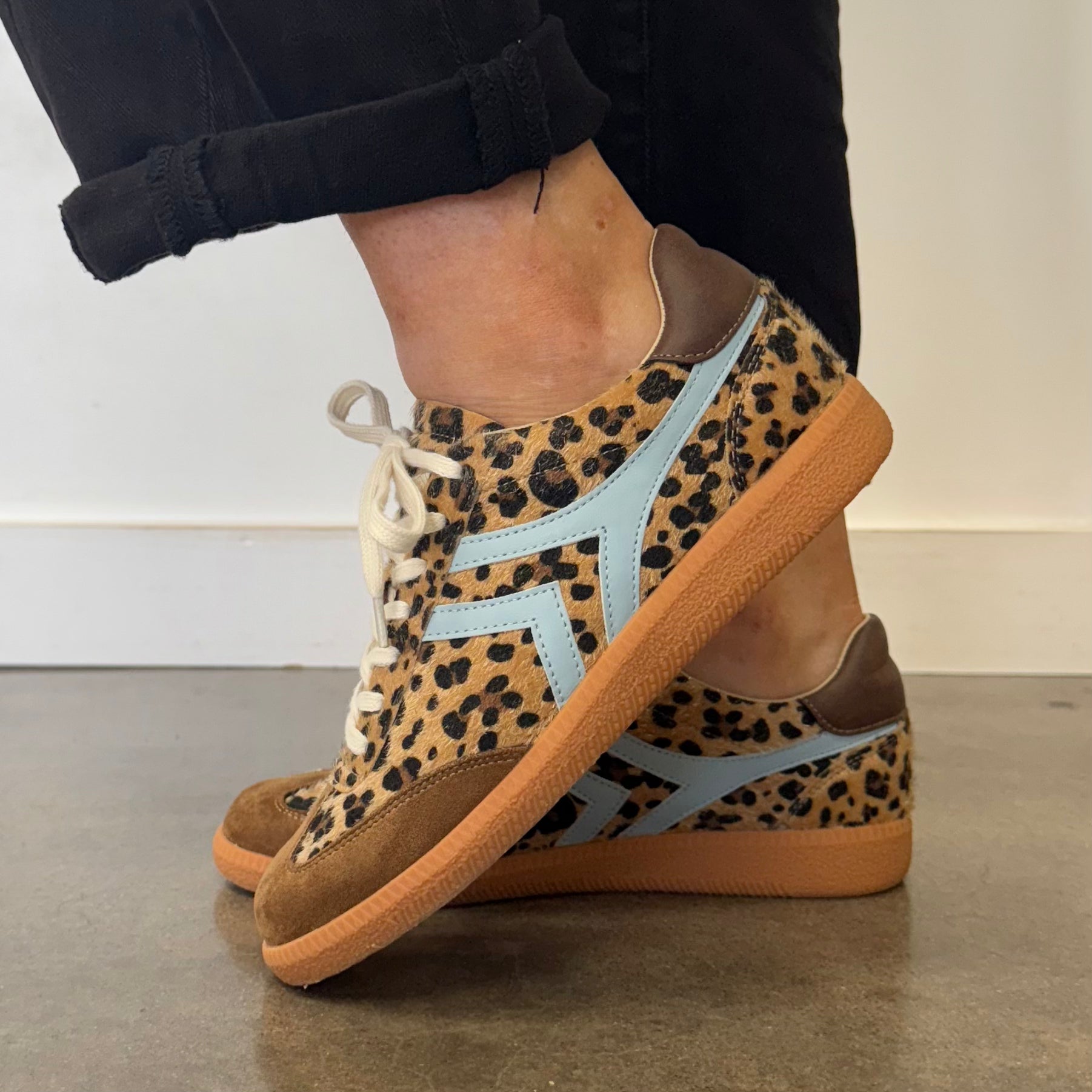 Make a statement with the Xena Leopard sneaker—the perfect fusion of wild style and everyday wearability. The plush leopard fur feel commands attention, while sophisticated suede accents at the toe elevate your look with refined detail. Bold blue side stripes inject contemporary edge into a timeless animal print, creating a sneaker that stands out without trying too hard. Built with a cushioned sole that supports you from morning to night, these sneakers prove you don't have to sacrifice comfort for style. Included bonus: an extra shoelace to switch up your vibe whenever inspiration strikes. Your feet will thank you, and your wardrobe will never be the same.